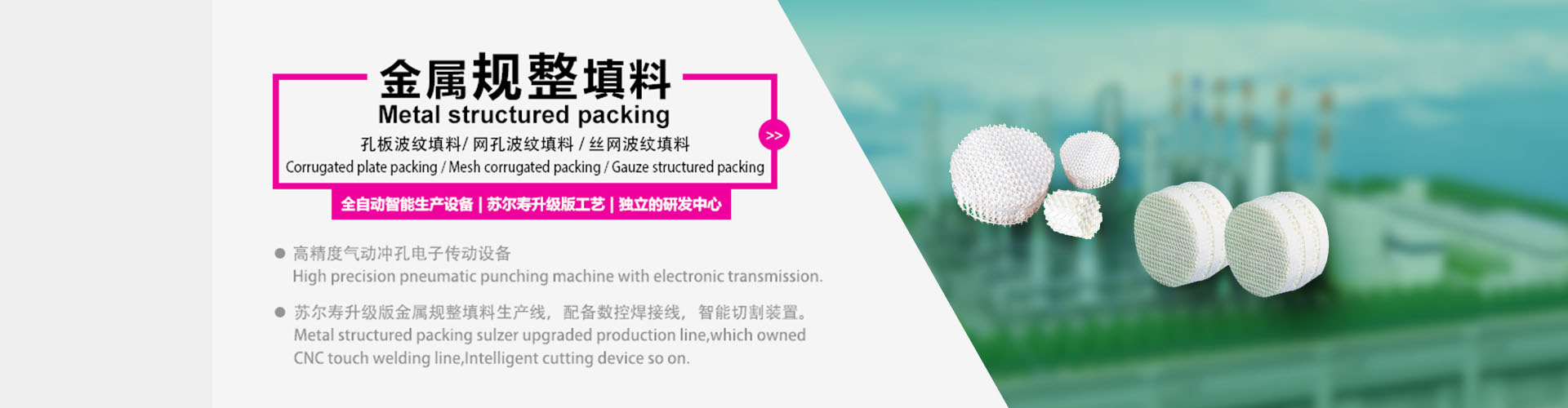 陶瓷規整填料與散堆填料相比具有效率高,降壓低,處理量大,持液量小,放大效應不明顯,操作彈性大等一系列優點。它由許多具有相同幾何形狀的填料單元體構成。陶瓷規整波紋